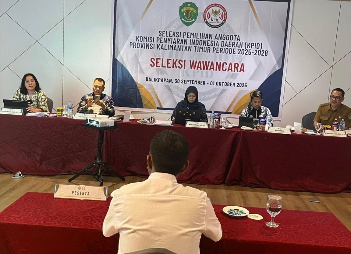 BALIKPAPAN, INDEKSMEDIA.ID – Proses seleksi calon anggota Komisi Penyiaran Indonesia Daerah (KPID) Provinsi Kalimantan Timur periode 2025–2028 memasuki tahap krusial. Sebanyak 43 peserta mengikuti tahapan wawancara yang digelar selama dua hari di Hotel Grand Astara Balikpapan, mulai Selasa (30/9/2025).