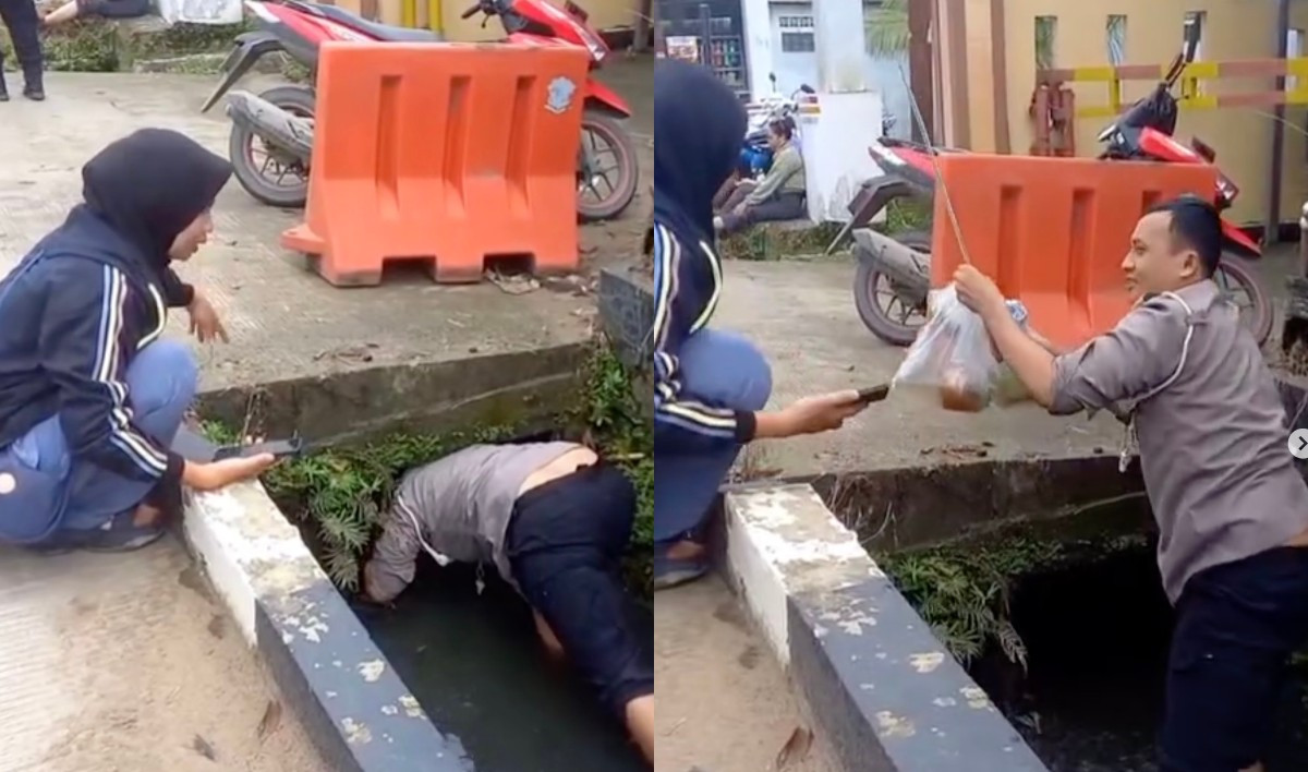 Kejadian bermula ketika seorang perempuan muda melintas di depan polsek dan tak sengaja menjatuhkan kantongan plastik berisi barang belanjaan ke dalam parit. Melihat hal itu, Aipda Amrullah langsung berinisiatif menolong tanpa memedulikan seragam dinas yang dikenakannya.