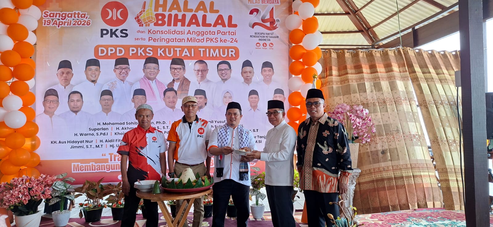 Bupati Kutai Timur, H. Ardiansyah Sulaiman (dua dari kiri) berdampingan dengan Wakil Bupati Kutai Timur, H. Mahyunadi dalam halal Bihalal DPD PKS Kutai Timur.