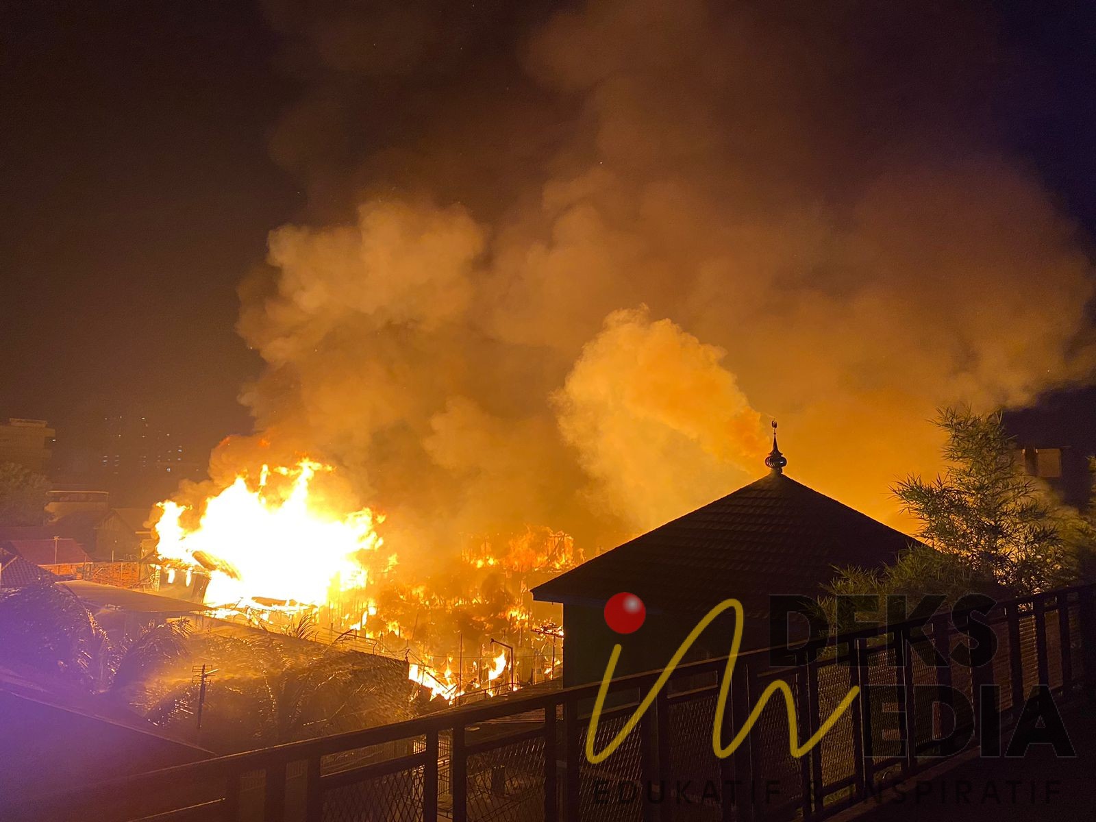 Pantauan langsung wartawan Indeksmedia.id, puluhan rumah warga hangus terbakar dilalap si jago merah. Api dengan cepat membesar karena bangunan yang rata-rata berbahan kayu serta kondisi gang yang sempit.