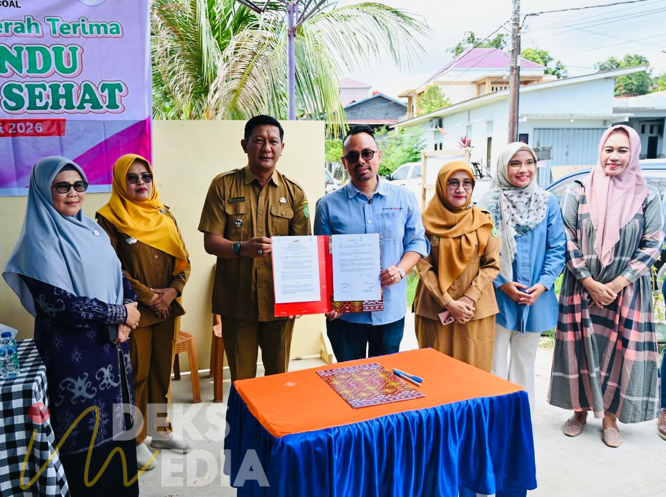 Serah terima bangunan posyandu ditandai dengan penandatanganan berita acara yang diterima langsung Kepala Desa Swarga Bara, Wahyudin Usman.