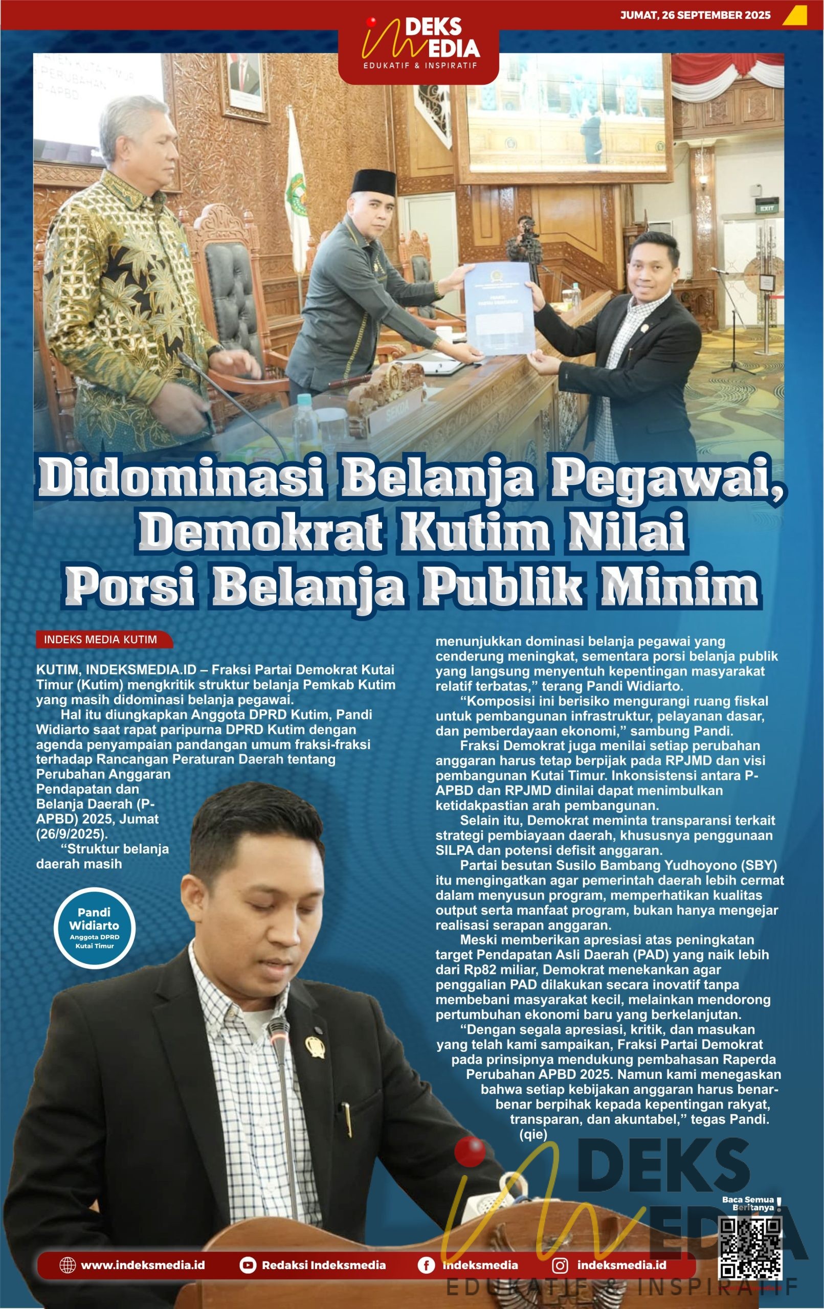 Didominasi Belanja Pegawai, Demokrat Kutim Nilai Porsi Belanja Publik Minim