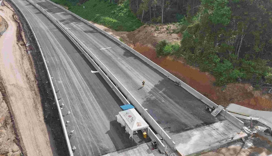 Sejumlah pekerjaan masih berlangsung di lapangan, meliputi timbunan pilihan, penghamparan lapis fondasi bawah dan atas, pemasangan slab struktur, pengecoran, pengamanan lereng, hingga pembangunan sistem drainase. Dengan kondisi tersebut, Tol IKN 1B belum masuk dalam jalur yang dibuka untuk operasional fungsional selama periode Nataru.