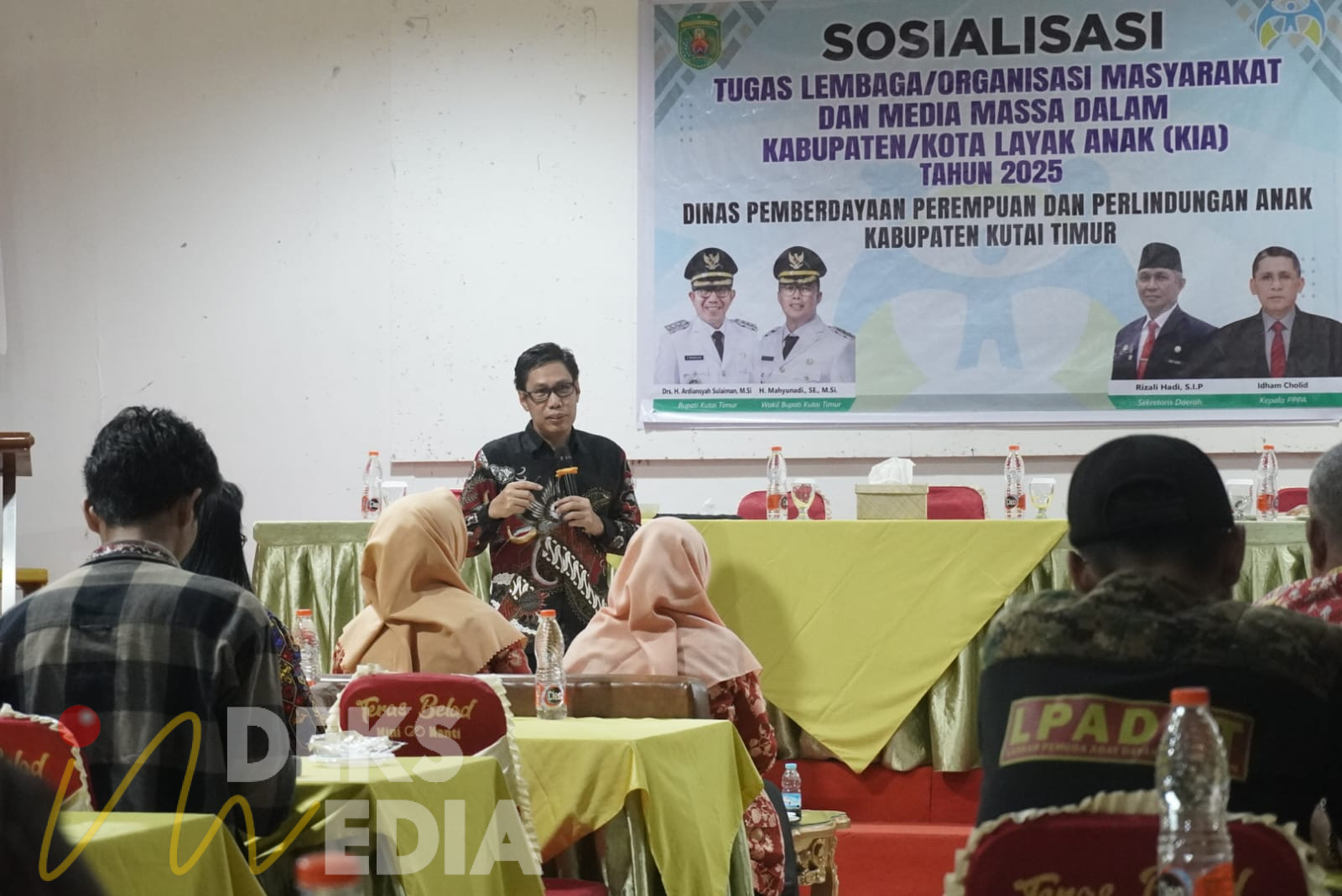 KUTIM,INDEKSMEDIA.ID – Dinas Pemberdayaan Perempuan dan Perlindungan Anak (DP3A) Kabupaten Kutai Timur (Kutim) menggelar sosialisasi Tugas Lembaga/Organisasi Masyarakat dan Media Massa dalam Kabupaten/Kota Layak Anak (KLA) di Hotel Teras Belad, Kamis (23/10/2025).