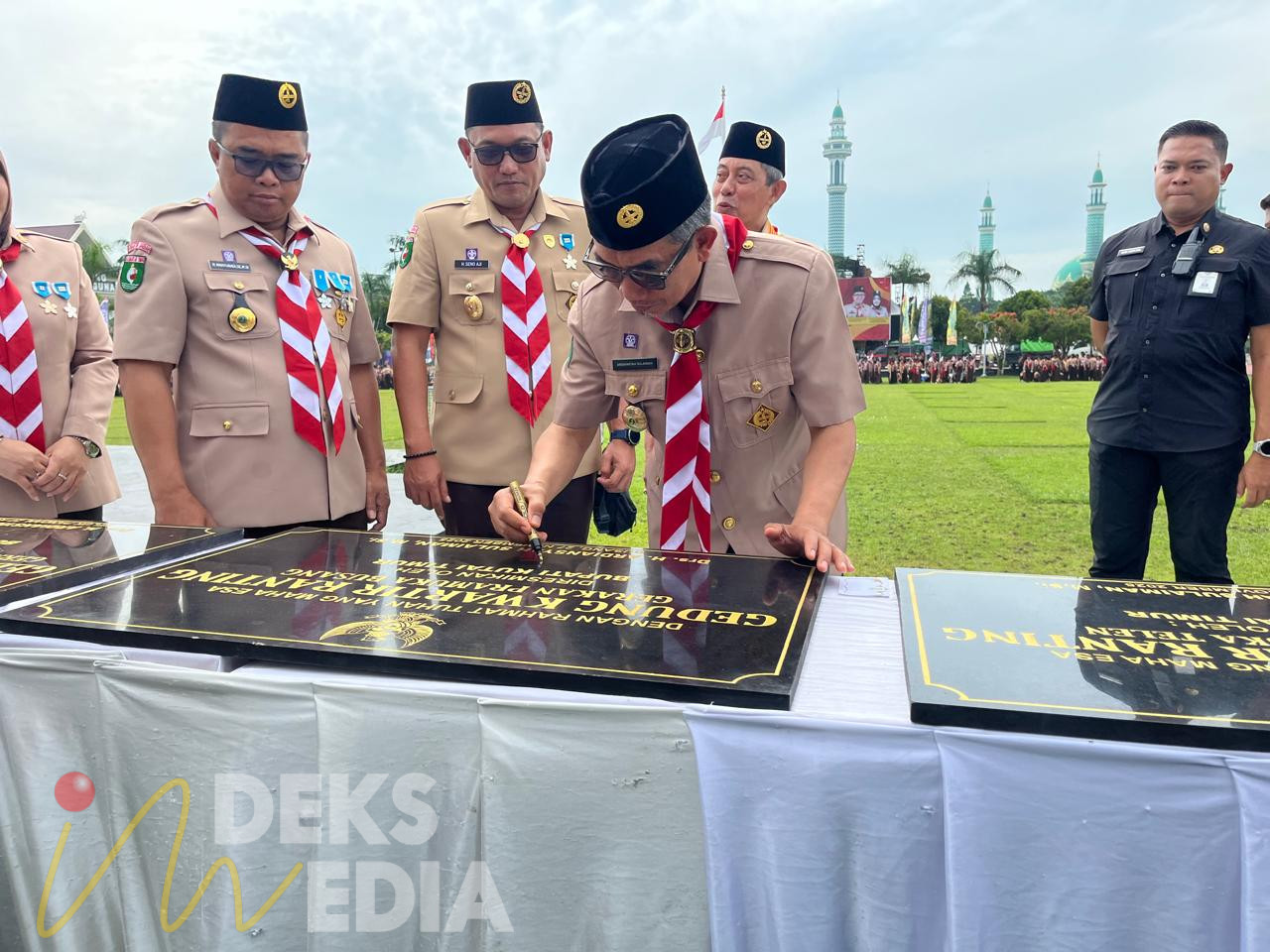 Pada peringatan Hari Pramuka kali ini, Bupati Ardiansyah menandatangani prasasti peresmian 14 Sekretariat Kwarran sekaligus.