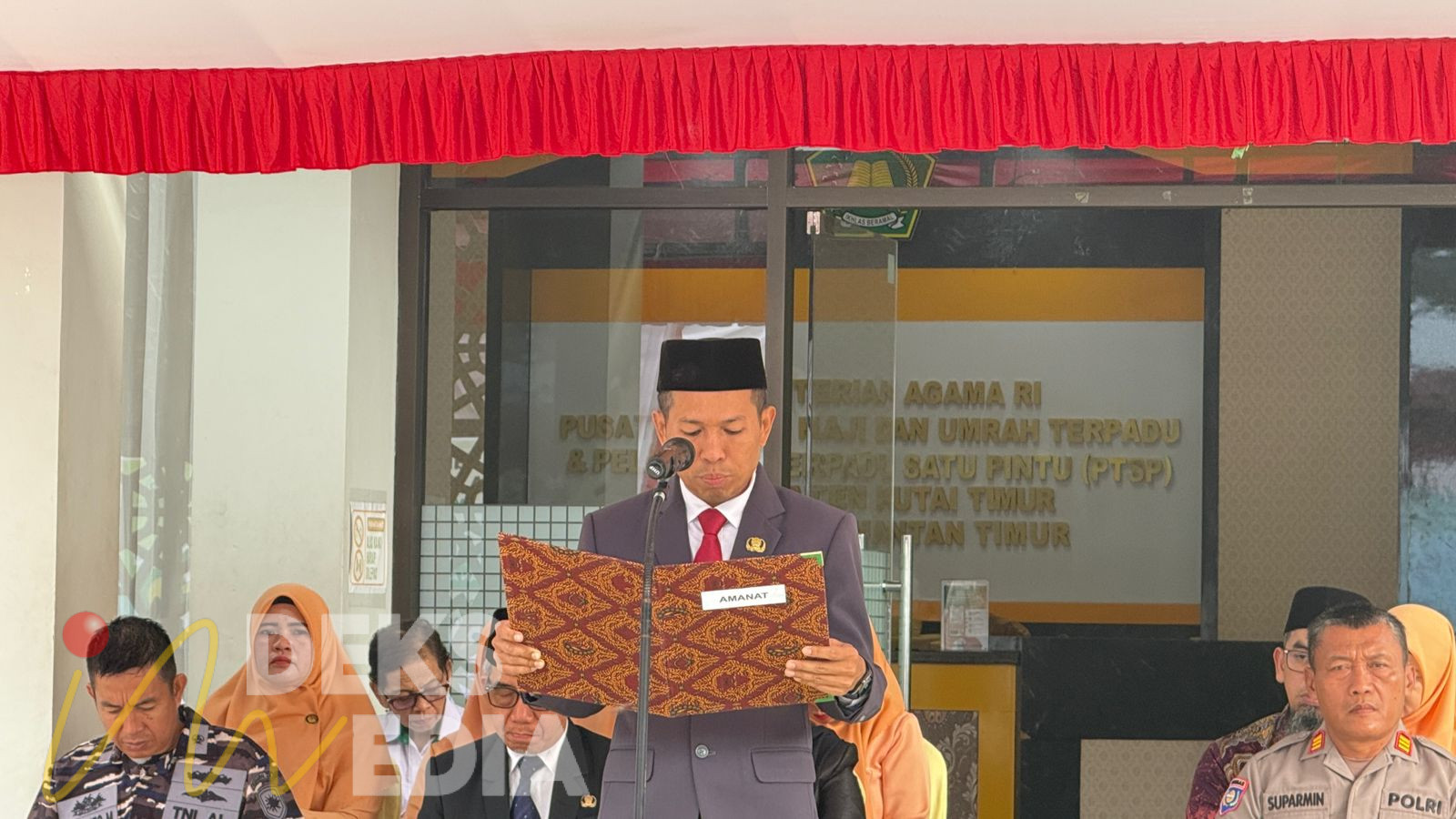 Upacara dihadiri Bupati Kutai Timur, H. Ardiansyah Sulaiman serta diikuti jajaran Kementerian Agama Kabupaten Kutai Timur, ASN, serta unsur terkait. Kepala Kemenag Kutai Timur, Akhmad Berkati, bertindak sebagai pembina upacara dengan membacakan sambutan Menteri Agama Republik Indonesia, Prof Nasaruddin Umar.