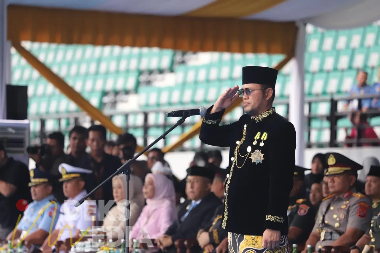 Gubernur Kaltim, Rudy Mas'ud pimpin puncak peringatan HUT ke-69 Provinsi Kaltim di Gelora Kadrie Oening, Sempaja, Samarinda, Jumat (9/1/2026).