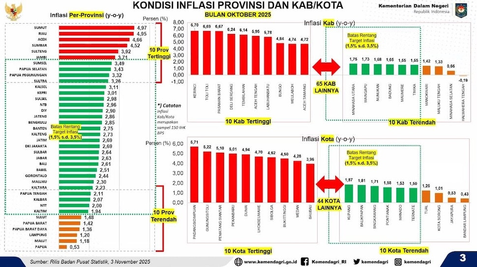 Meski beberapa komoditas mengalami tekanan, inflasi di Kalimantan Timur tetap berada pada level yang terkendali. Pemerintah pusat memberikan apresiasi atas capaian daerah-daerah yang mampu menjaga stabilitas harga dalam rentang target nasional.