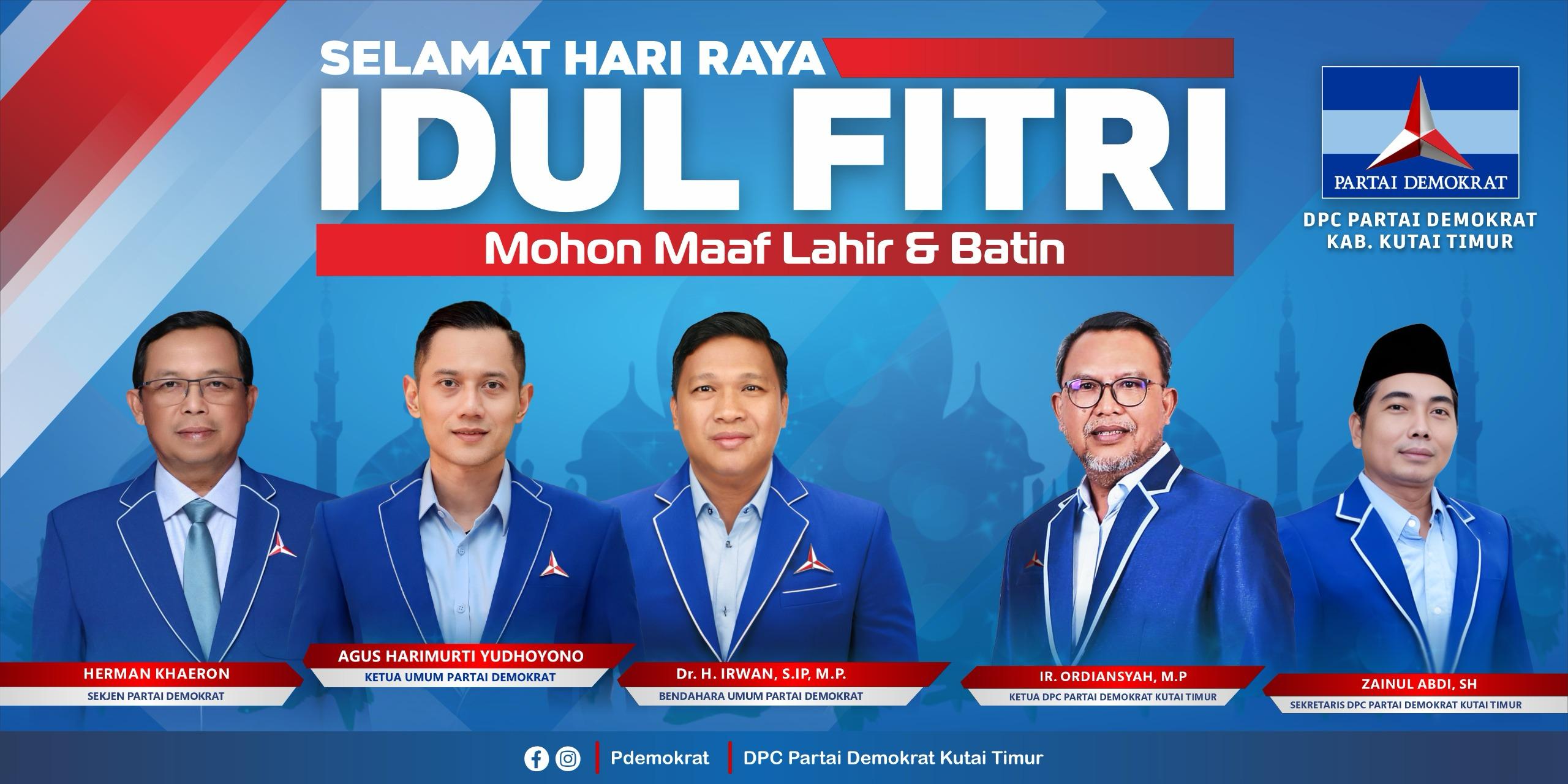 DPC Partai Demokrat Kutim mengucapkan Selamat Hari Raya Idul Fitri 1446 Hijriah kepada seluruh masyarakat Kutim dengan harapan hari kemenangan ini membawa keberkahan dan kesuksesan bagi semua. (*)