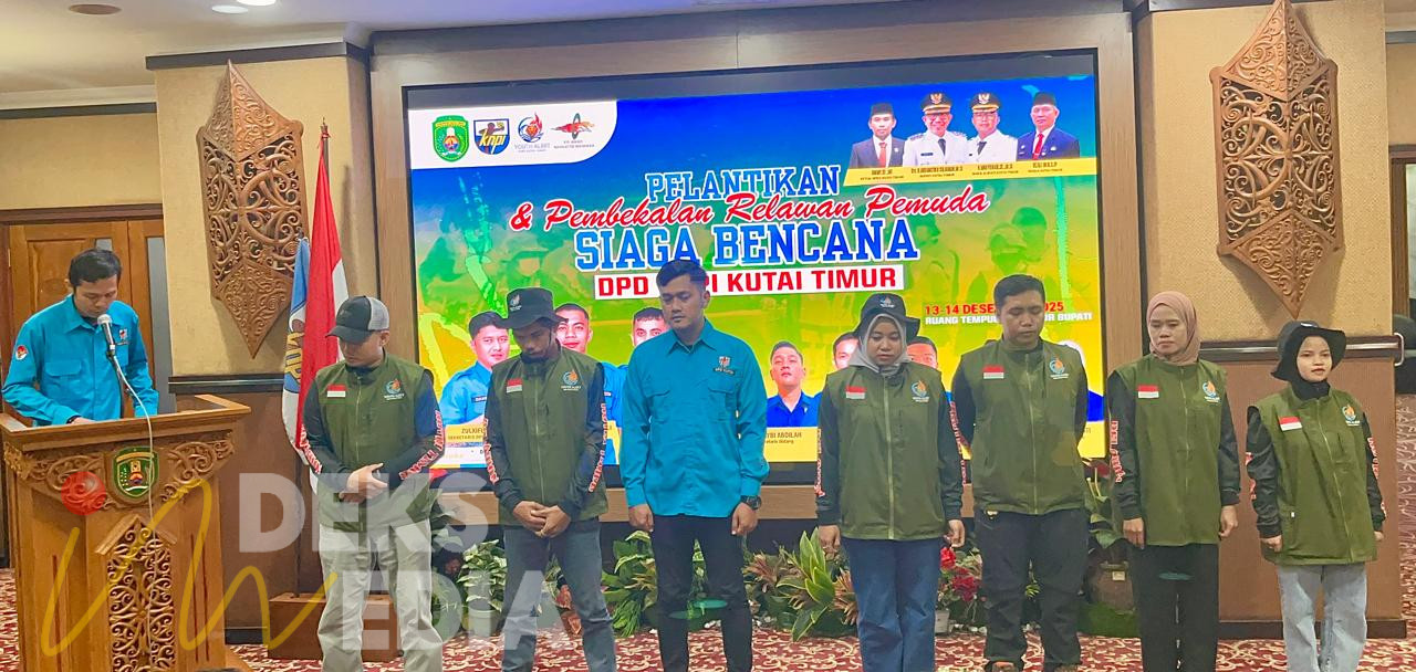 KUTIM,INDEKSMEDIA.ID – DPD KNPI Kutai Timur melalui bidang penanggulangan bencana melantik dan memberikan pembekalan Relawan Pemuda Siaga Bencana di Ruang Tempudau, Kantor Bupati Kutai Timur, Sabtu (13/12/2025).