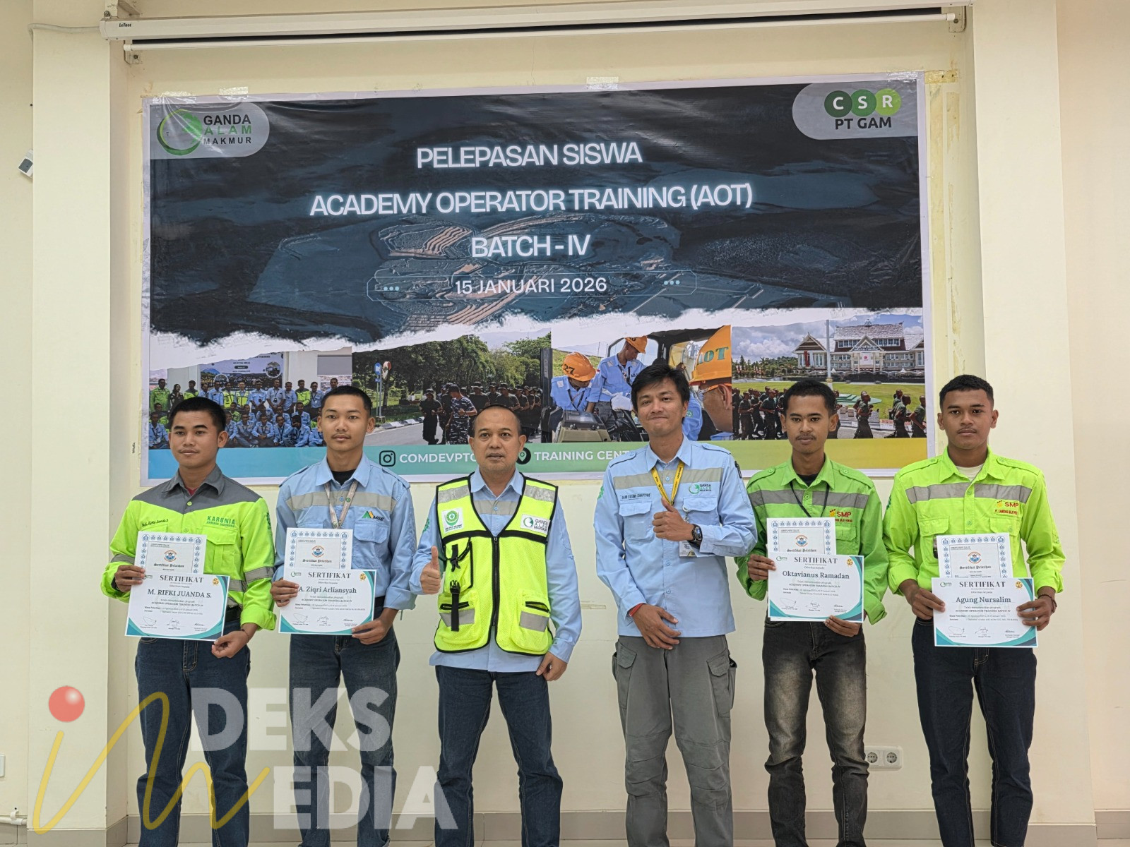 KUTIM,INDEKSMEDIA.ID – PT. Ganda Alam Makmur (GAM) kembali membuktikan komitmennya dalam pemberdayaan masyarakat lingkar tambang dan penyerapan sumber daya manusia lokal berkualitas melalui program Academy Operator Training (AOT). PT GAM secara resmi melepas 30 siswa lulusan AOT Batch-IV yang siap terjun ke dunia industri pertambangan, Kamis (15/1/2026).