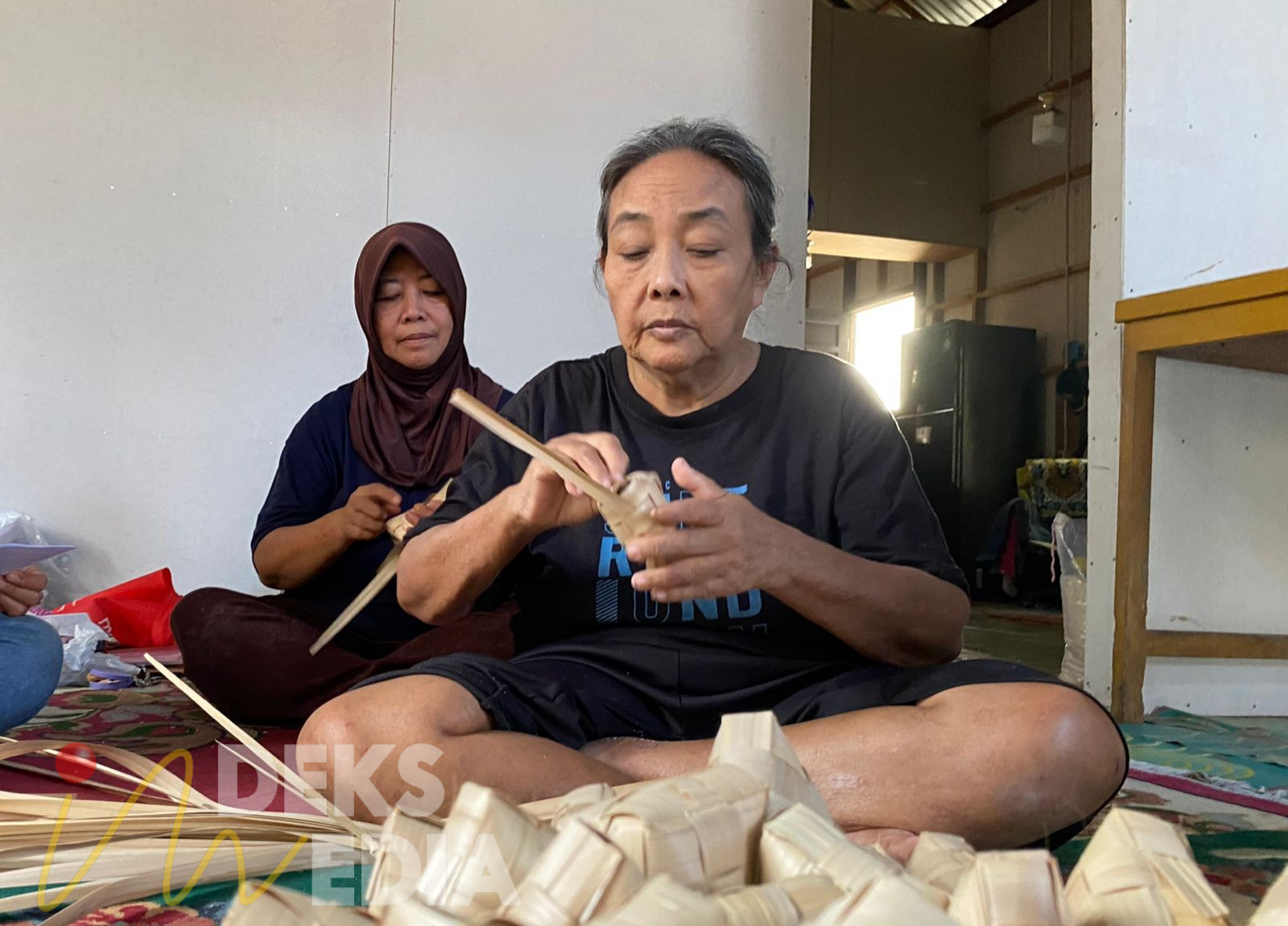 Potret kemiskinan di Kota Samarinda, Kalimantan Timur tercermin kehidupan Mariawati dan Masniah bersaudara/ Sebagai pembuat ketupat di Kelurahan Mesjid, Kecamatan Samarinda Seberang, berjuang untuk tetap bertahan hidup. Meski pemerintah salurkan bantuan, tapi keluarga mereka tak terdata alias tidak mendapat penyaluran. (Foto: Yah/Indeksmedia)
