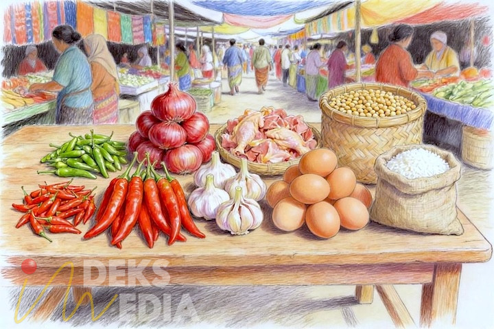 Ilustrasi buatan AI: penjualan komoditas pangan di Pasar Tradisional (dok Indeksmedia.id)