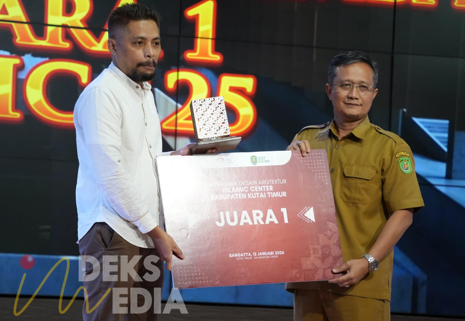 KUTIM,INDEKSMEDIA.ID – Penganugerahan sayembara desain arsitektur Islamic Center Kutai Timur digelar di Gedung Serbaguna Bukit Pelangi, Kecamatan Sangatta Utara, Senin (12/1/2026).