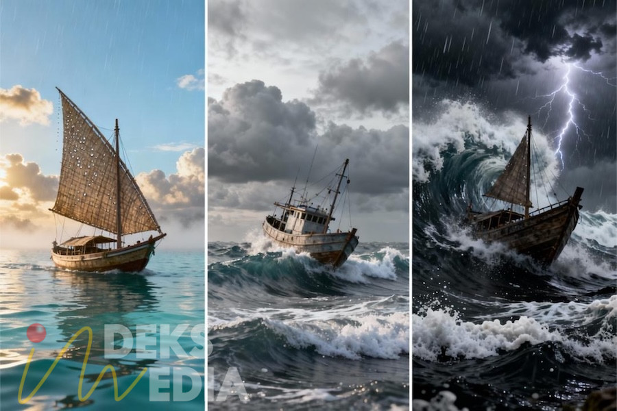 ilustrasi prakiraan tinggi gelombang perairan dan kondisi cuaca (dok: Indeksmedia/AI)