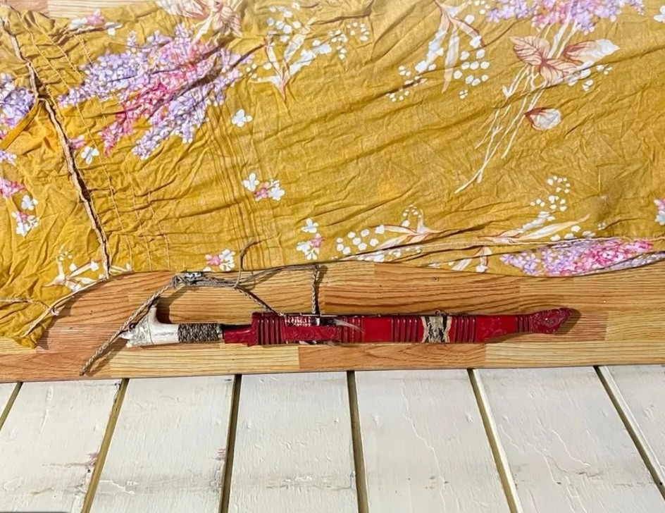 Sebilah mandau sepanjang sekitar 60 cm dan satu potong daster diamankan sebagai barang bukti. (Foto: Polres Kukar)
