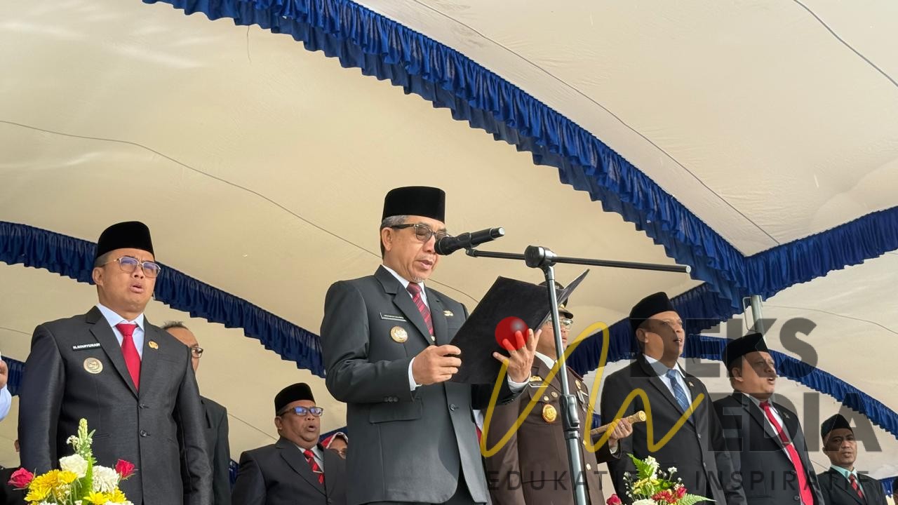 Upacara berlangsung khidmat dan dihadiri jajaran Forum Koordinasi Pimpinan Daerah (Forkopimda), pejabat pemerintahan, serta perwakilan berbagai instansi.