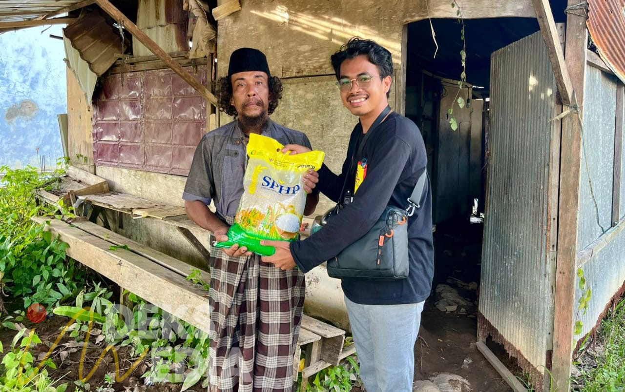 Jurnalis Indeksmedia saat menyalurkan bantuan beras dari Polres Kutai Timur. (ft/ema)