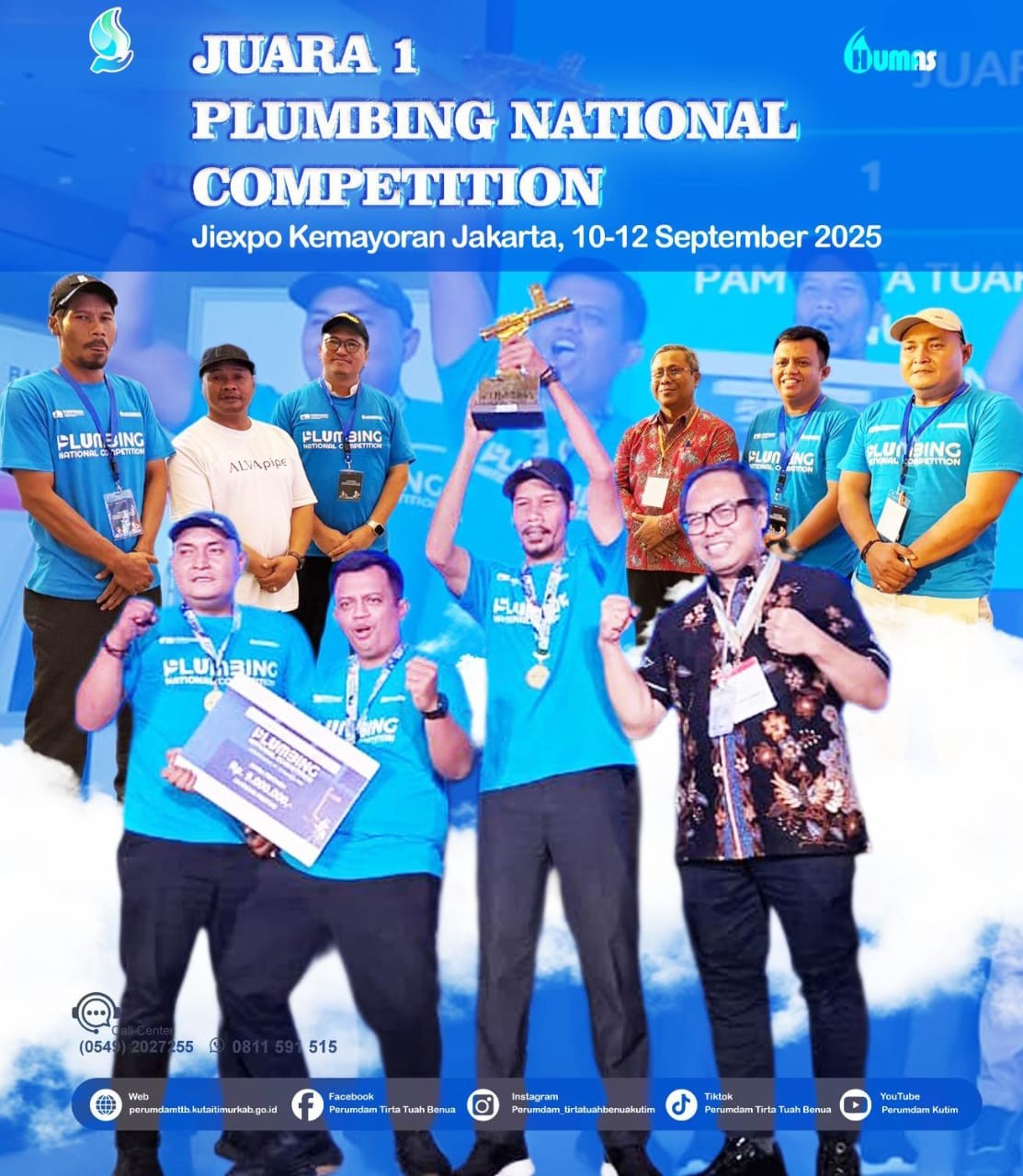 Dalam ajang Plumbing National Competition 2025 yang berlangsung di JIExpo Kemayoran, Jakarta, 10–12 September 2025, tim Perumdam Kutim berhasil meraih Juara 1 Nasional.
