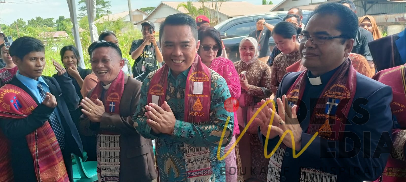 KUTIM,INDEKSMEDIA.ID – Suasana penuh sukacita mewarnai pesta pembangunan Gereja Huria Kristen Indonesia (HKI) Sangatta–Resort Bontang yang digelar di Jalan Kabo Jaya, Desa Swarga Bara, Sangatta Utara, Minggu (7/9/2025). Acara ini dihadiri Wakil Bupati Kutai Timur, Mahyunadi, bersama Ketua DPRD Kutim.