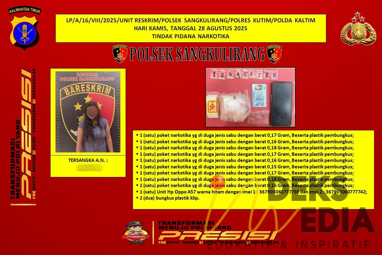 Polsek Sangkulirang Tangkap Perempuan Pengedar Sabu di Kutim