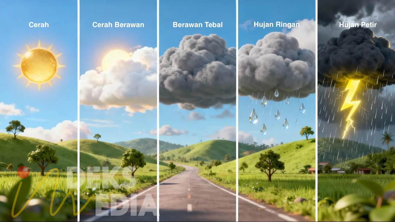 Suhu 21–32°C, kelembapan 54–100%. - Berau: Hujan ringan pagi dan meningkat jadi hujan petir malam hari.