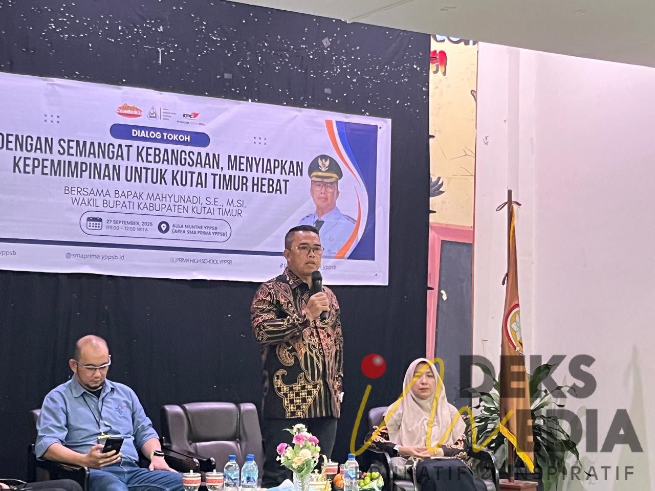 KUTIM,INDEKSMEDIA.ID – Wakil Bupati Kutai Timur, H. Mahyunadi, hadir dalam audiensi dan dialog kebangsaan di SMA Yayasan Pendidikan Prima Swarga Bara (YPPSB), Sangatta Utara, Kamis (25/9/2025).