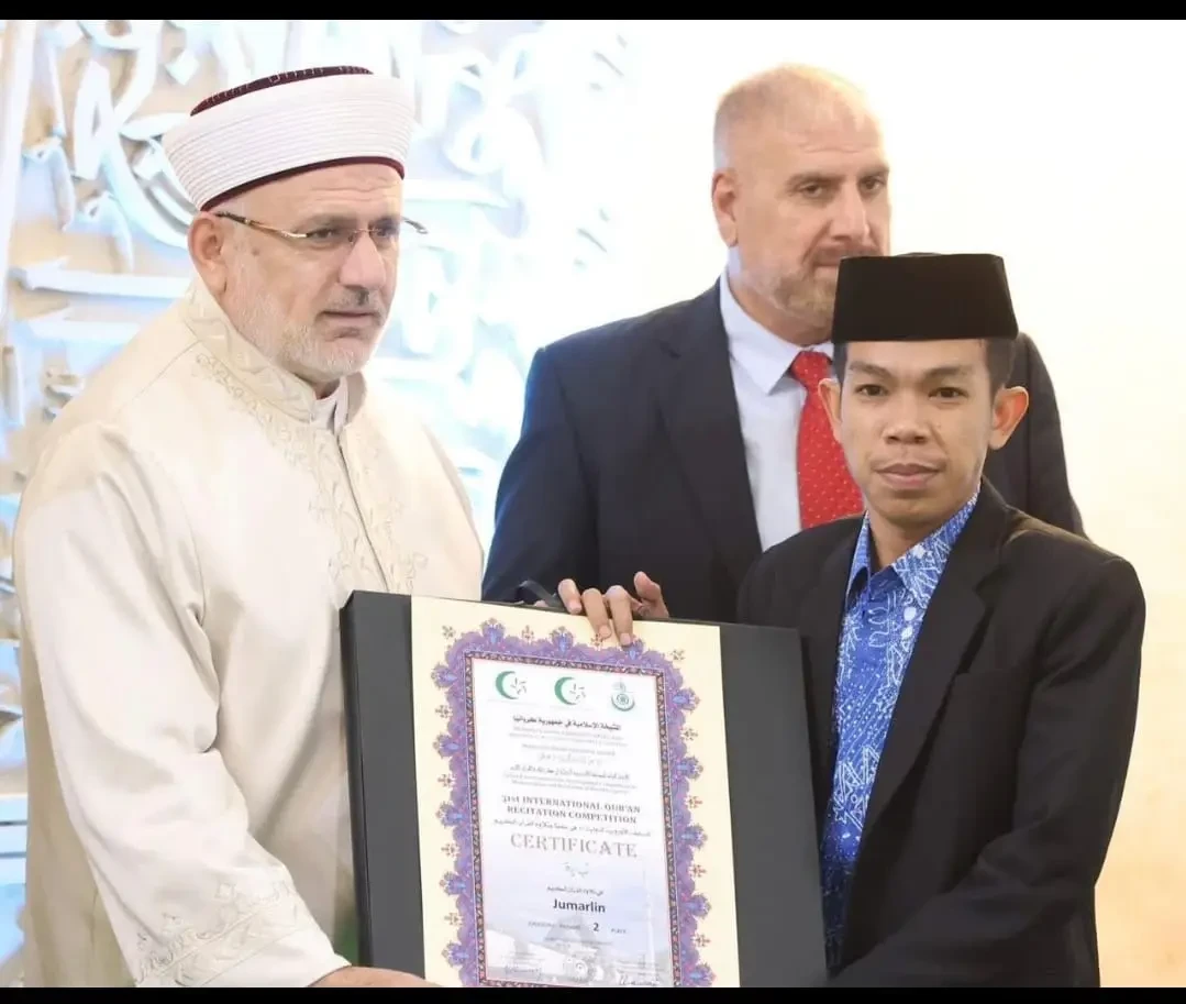 ZAGREB, INDEKSMEDIA.ID – Qori asal Kecamatan Muara Badak, Kabupaten Kutai Kartanegara, Kalimantan Timur, Jumarlin, berhasil mengharumkan nama Indonesia setelah meraih juara 2 pada ajang Musabaqah Tilawatil Qur’an (MTQ) Tingkat Internasional di Zagreb, Kroasia, 25–27 September 2025.