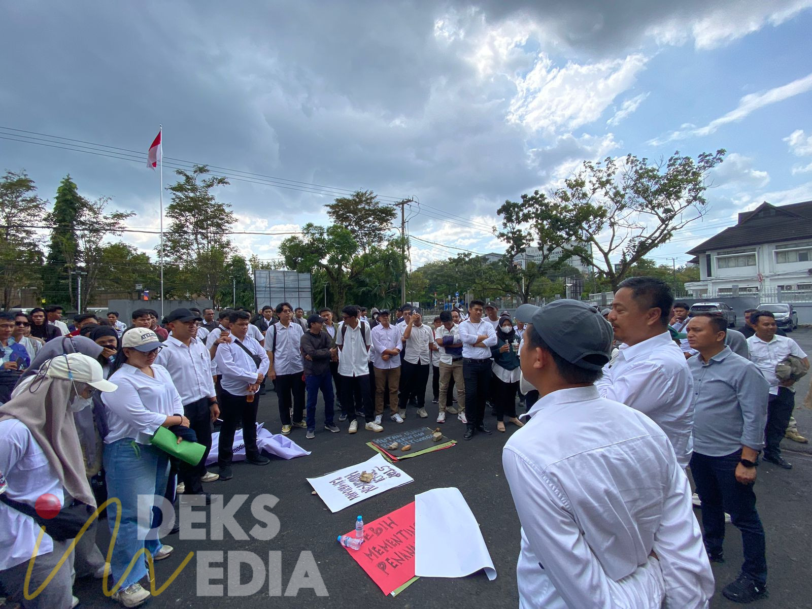 Mereka menuntut kepastian nasib kepegawaian setelah kebijakan terbaru hanya mengakomodir 109 orang dari total 306 tenaga bakti yang selama ini mengabdi.