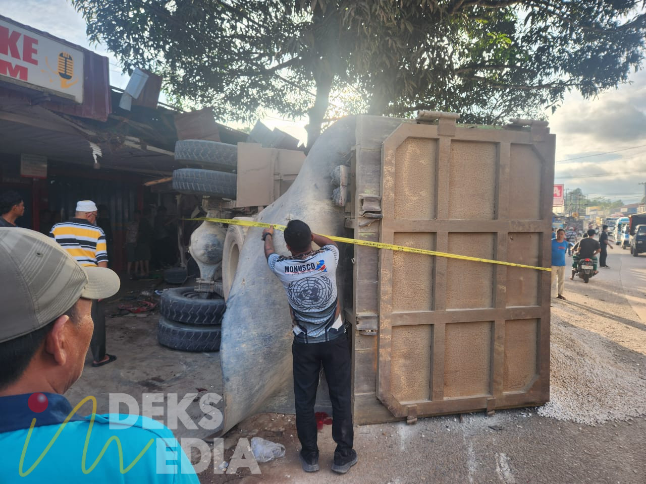 “Truk langsung menabrak bagian belakang Toyota Hilux di depannya, lalu mendorong kendaraan itu hingga masuk ke area bengkel. Lima sepeda motor yang terparkir ikut terseret dan tertimpa,” jelas AKP Asriadi.