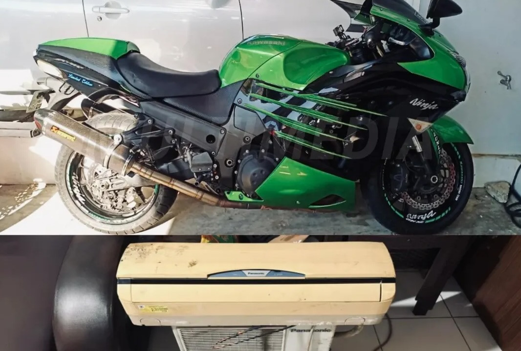 Barang bukti hasil pencurian berupa motor kawasaki Ninja dan unit AC di Samarinda Ulu (dok Polresta Samarinda)