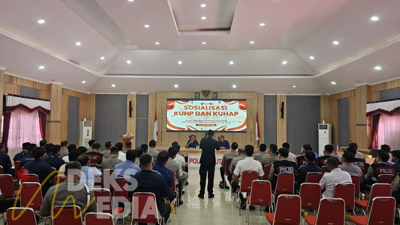 KUTIM,INDEKSMEDIA.ID – Satuan Reserse Kriminal (Satreskrim) Polres Kutai Timur menggelar sosialisasi pemahaman Kitab Undang-Undang Hukum Pidana (KUHP) dan Kitab Undang-Undang Hukum Acara Pidana (KUHAP) yang baru, Selasa (3/2/2026). Kegiatan tersebut berlangsung di Auditorium Polres Kutai Timur.