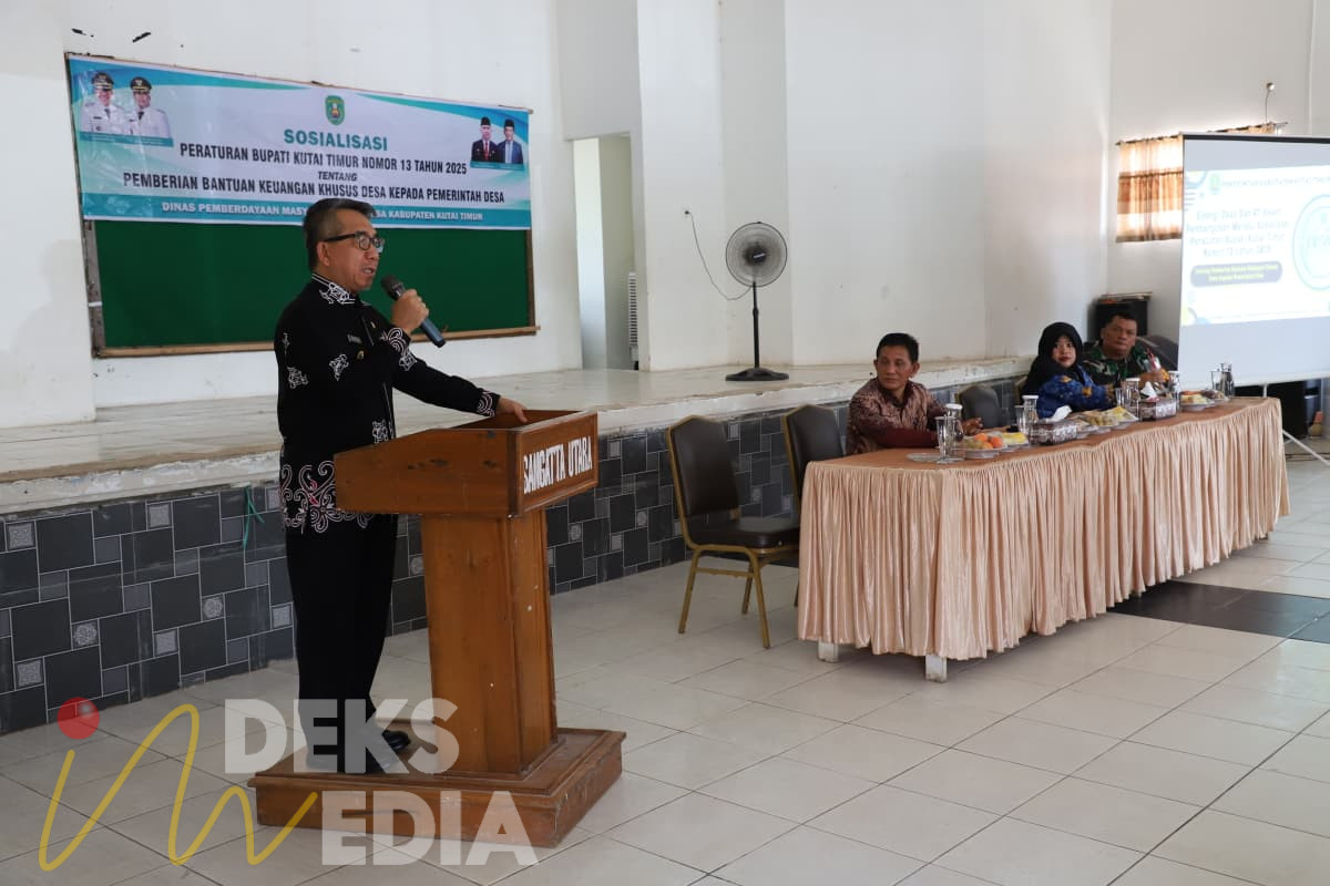 KUTIM,INDEKSMEDIA.ID – Pemerintah Kabupaten (Pemkab) Kutai Timur (Kutim) melalui Dinas Pemberdayaan Masyarakat dan Pemerintahan Desa (DPMPDes) menggelar sosialisasi Peraturan Bupati (Perbup) Kutim Nomor 13 Tahun 2025 tentang Pemberian Bantuan Keuangan Khusus Desa (BKKD).