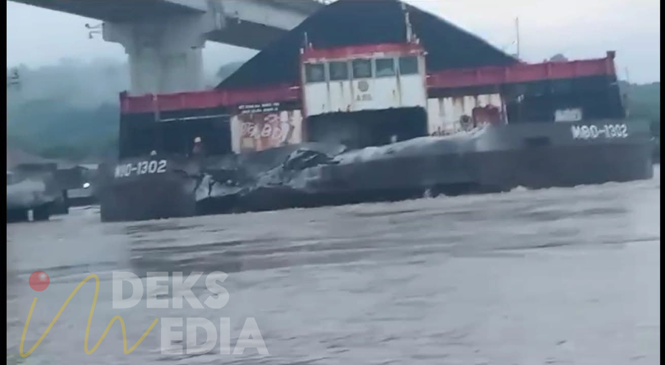 Peristiwa tersebut terjadi pada Selasa, 23 Desember 2025, sekitar pukul 05.00 Wita, saat tongkang M80-1302 yang ditarik Tugboat KD 2018 melintas di bawah bentang Jembatan Mahulu di Sungai Mahakam.