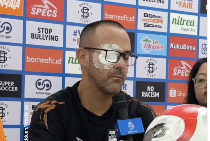 Kondisi tersebut tertangkap dalam konferensi pers jelang laga BRI Liga 1 2025/2026 antara Borneo FC dan Persik Kediri yang digelar di Stadion Segiri, Samarinda, Jumat (17/10/2025). Fabio tampak hadir mengenakan kacamata dengan perban di mata kanan, namun tetap memimpin sesi wawancara dengan tenang.