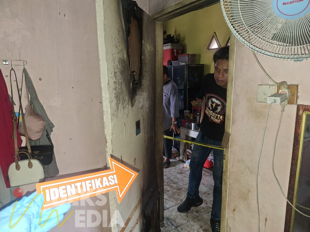Akibat kejadian itu, sebagian isi rumah seperti pintu kamar dan dinding hangus terbakar. Polisi juga mengamankan sejumlah barang bukti, termasuk baju korban yang terbakar, lelehan ember plastik, dan botol plastik yang meleleh.