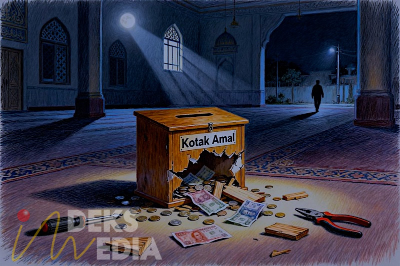 Kotak amal yang seharusnya menjadi wadah sedekah umat, ia bongkar dengan mudah. Gembok rusak, uang hilang, dan warga hanya bisa mengelus dada setiap kali mendapati kotak amal masjidnya lenyap isinya.