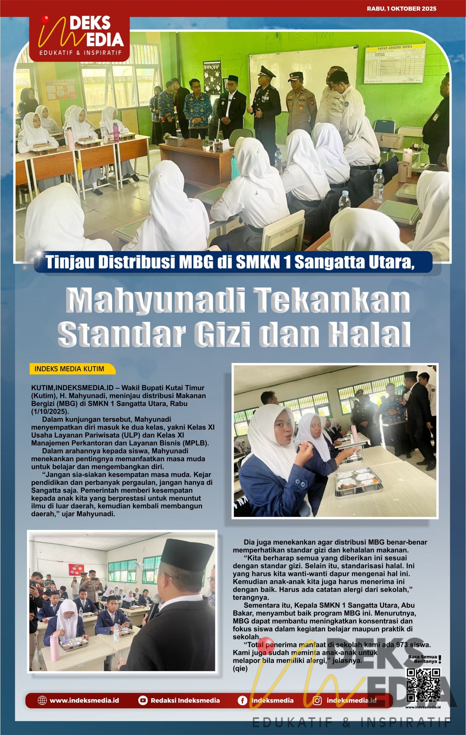 Tinjau Distribusi MBG di SMKN 1 Sangatta Utara, Mahyunadi Tekankan Standar Gizi dan Halal